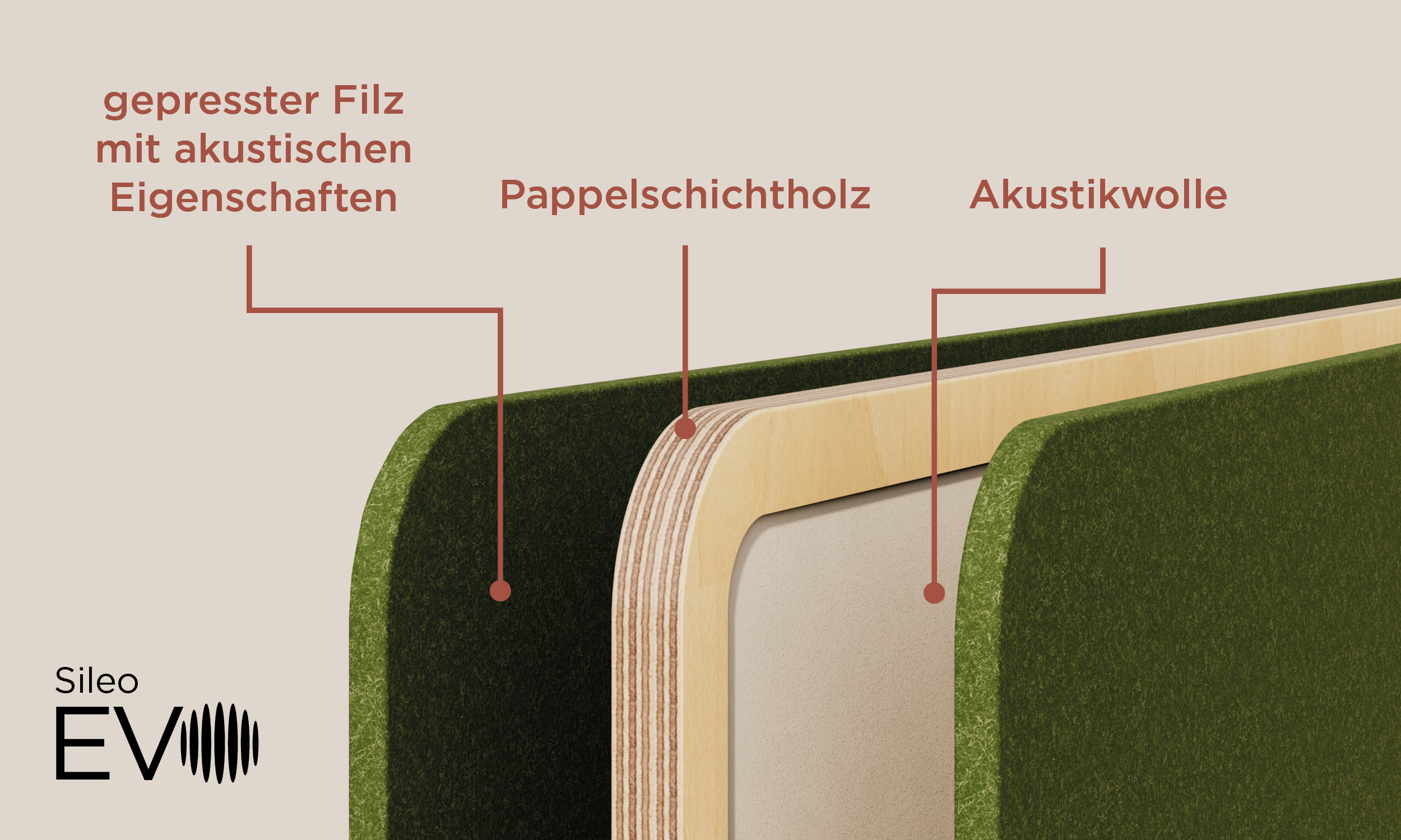 Die Filzvariante mit offen sichtbaren Kanten aus Pappelsperrholz verleiht Sileo Evo seinen unverwechselbaren Charakter. Natürliche Materialien und warme Details sorgen für eine leichte, freundliche Atmosphäre im Büro. So verbindet sich akustische Funktionalität mit reduziertem, zeitgemäßem Design.