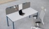 bSpace est une gamme de bureaux et benchs dont la structure légère avec une poutre en retrait, encastrée sous le plateau, facilite le montage, permet de déplacer et agencer aisément le meuble et d'installer librement des accessoires. C'est grâce à la poutre en retrait que les collisions sont éliminées lorsque l'on glisse le siège sous le plateau, ou pendant le travail.