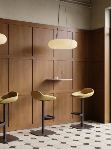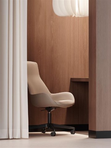La coque aux lignes organiques, inspirée de la fleur de lupin, insuffle douceur et subtil dynamisme à l’ensemble de la collection. Ses courbes arrondies créent une atmosphère apaisante et accueillante, venant adoucir la rigueur des espaces architecturaux. Un détail qui influence la perception émotionnelle d’un lieu, des zones d’accueil aux espaces de détente.
