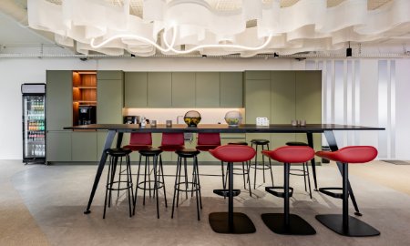Le concept derrière ce showroom était de créer des espaces de travail distincts pour différents départements, qui étaient auparavant répartis sur deux étages. Maintenant, chaque équipe a sa propre salle dédiée, ce qui favorise la communication et la collaboration efficace. Deux kitchenettes fonctionnelles - pour les clients et pour le personnel - sont un endroit idéal pour se détendre pendant la journée de travail.